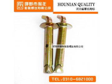 ? 膨脹螺栓由螺桿和膨脹管等部件組成,螺桿尾部為圓錐狀,圓錐的內(nèi)徑大于膨脹管內(nèi)徑當(dāng)螺母擰緊的時(shí)候,螺桿向外移動(dòng),通過(guò)螺紋的軸向移動(dòng)使圓錐部分移動(dòng),進(jìn)而膨脹管的外周面形成很大的正壓力,加之圓錐的角度很小,從而使墻體膨脹管及圓錐間形成摩擦自鎖,進(jìn)而達(dá)到固定作用。